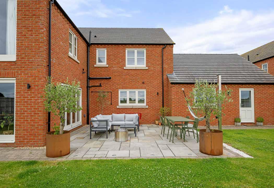• Paved Patio Terrace With Uplights and a Predominantly Lawn Rear Garden with Field Views