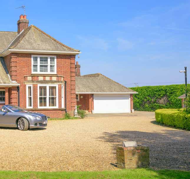 At the front, the sweeping gravel driveway continues to the side for plentiful parking, and leads directly to one of several double garages and outbuildings. The sheer amount of space for securely stowing cars would make this property ideal for a collector.