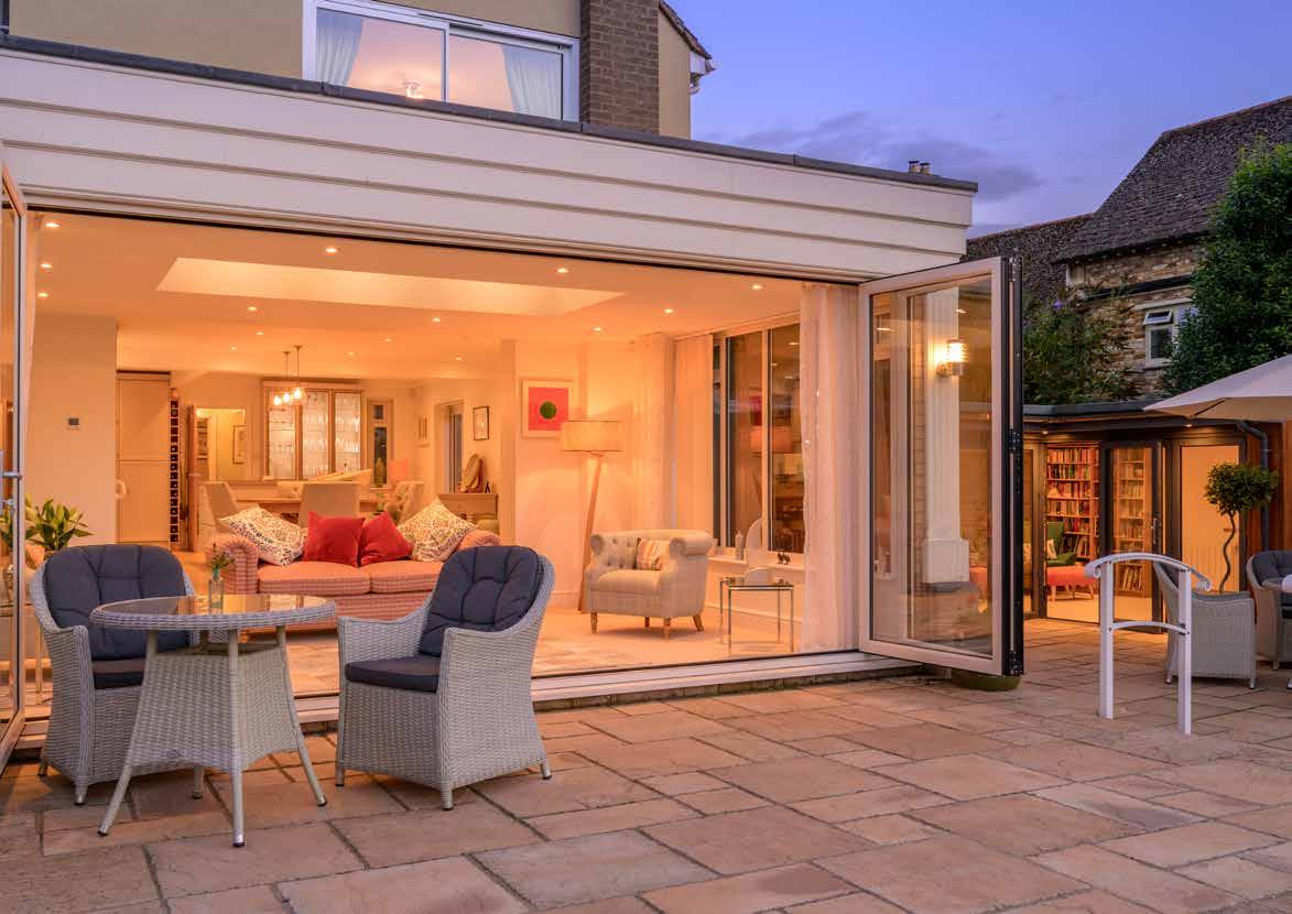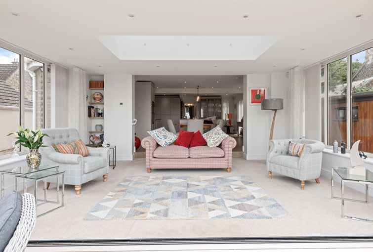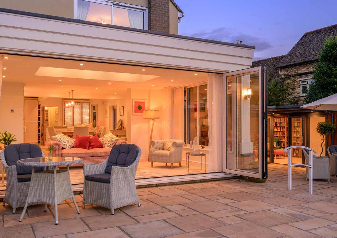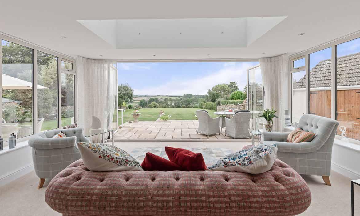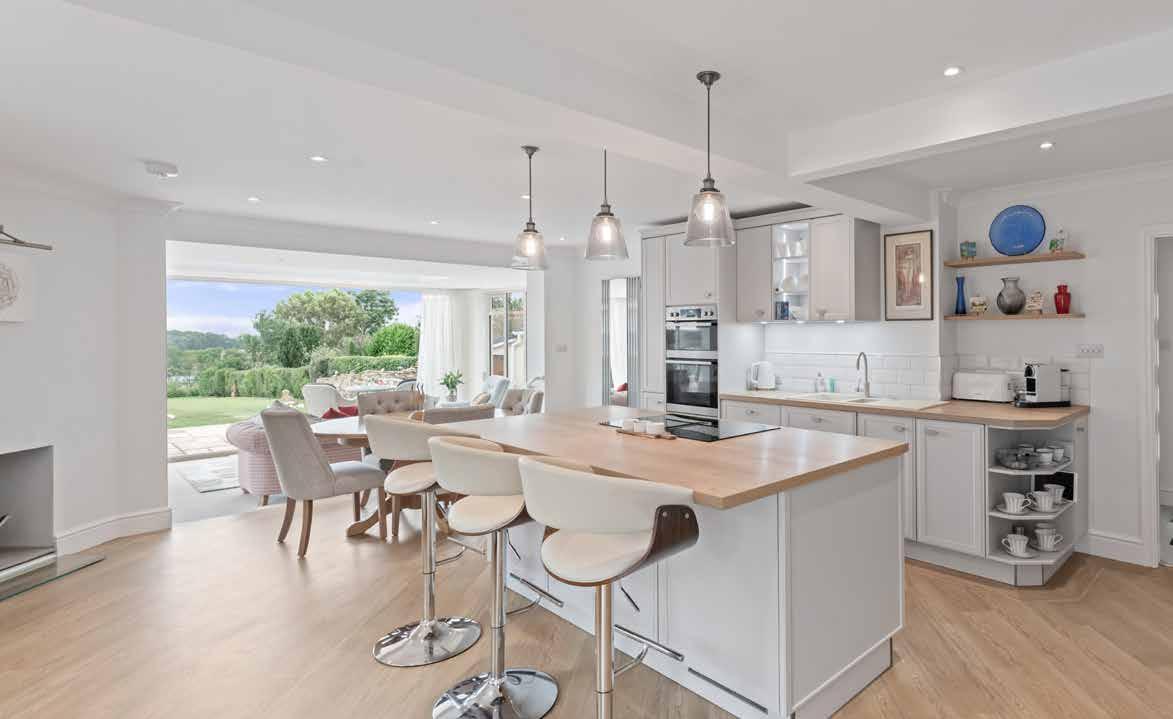 The contemporary, open plan kitchen hosts lots of storage space, a wine rack, and all the appliances one would expect to find including a built-in fridge freezer, built-in dishwasher, and an AEG double oven. A superb island stands in the centre with breakfast bar seating and an integrated Bosch hob which is internally vented. To one side there is a separate utility room and WC, and a door to the driveway, while on the other, doors lead to a patio within the aforementioned walled garden. Ahead is the outstanding orangery, with tranquil views, a roof lantern, and bifold doors onto a terrace that runs the width of the garden — perfect for alfresco dining. “It’s a great home for entertaining,” the owners shared. “We can sit outside or in the orangery, then go through into the dining room and from there retire to the lounge afterwards. We really do use every part of the house; it’s worked very, very well for us.”
