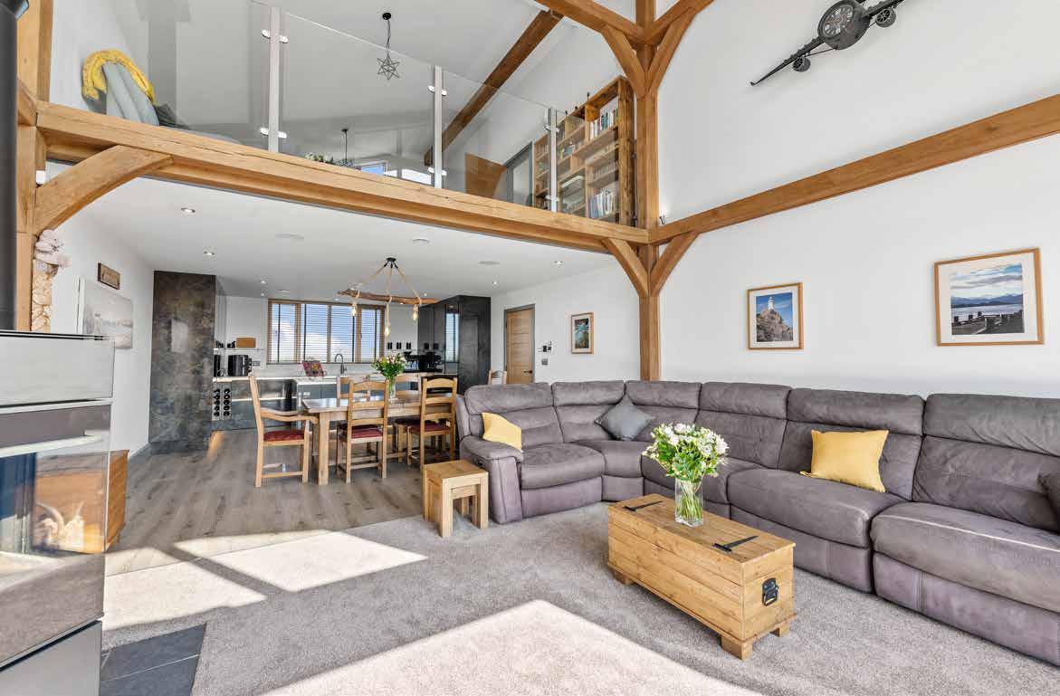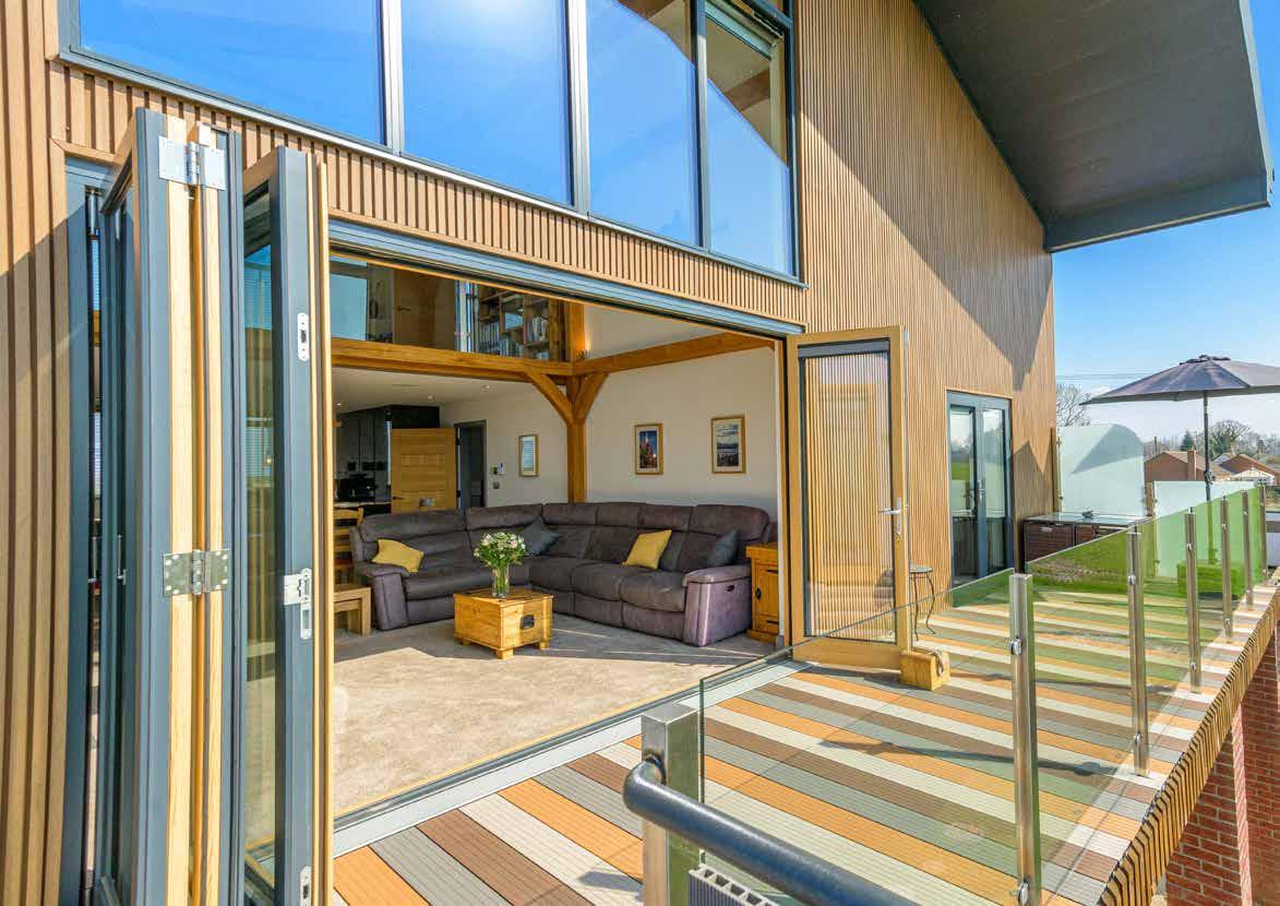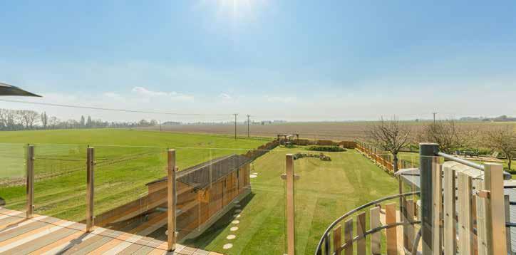 Having moved to the area eleven years ago, the owners once lived in the property next door to an allotment garden with farm fields behind, which would become Olive Tree Lodge. They personally designed then selfbuilt it over two years to “make the most of the amazing field views to the rear and sea view to the front”, purchasing part of the field adjoined to the former allotment for a larger garden.