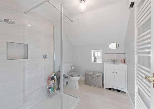 Upstairs there are four well-proportioned double bedrooms. The principal bedroom enjoys a shower room immediately adjacent, while a family bathroom serves the remaining rooms. Neutral décor continues throughout the bedrooms and landing, creating a calm and cohesive feel. A highlight is the freestanding bath, perfectly placed for long soaks at the end of the day.