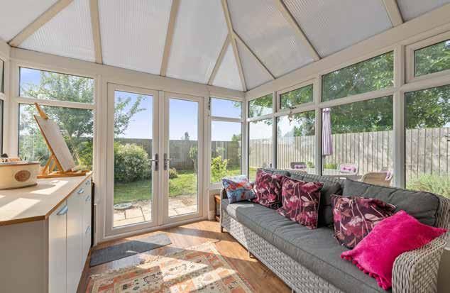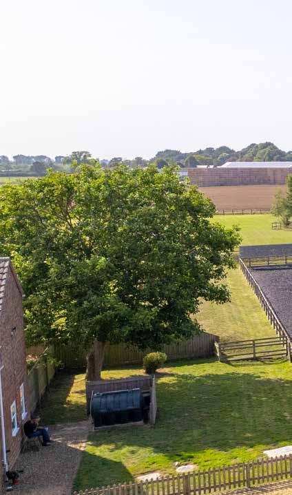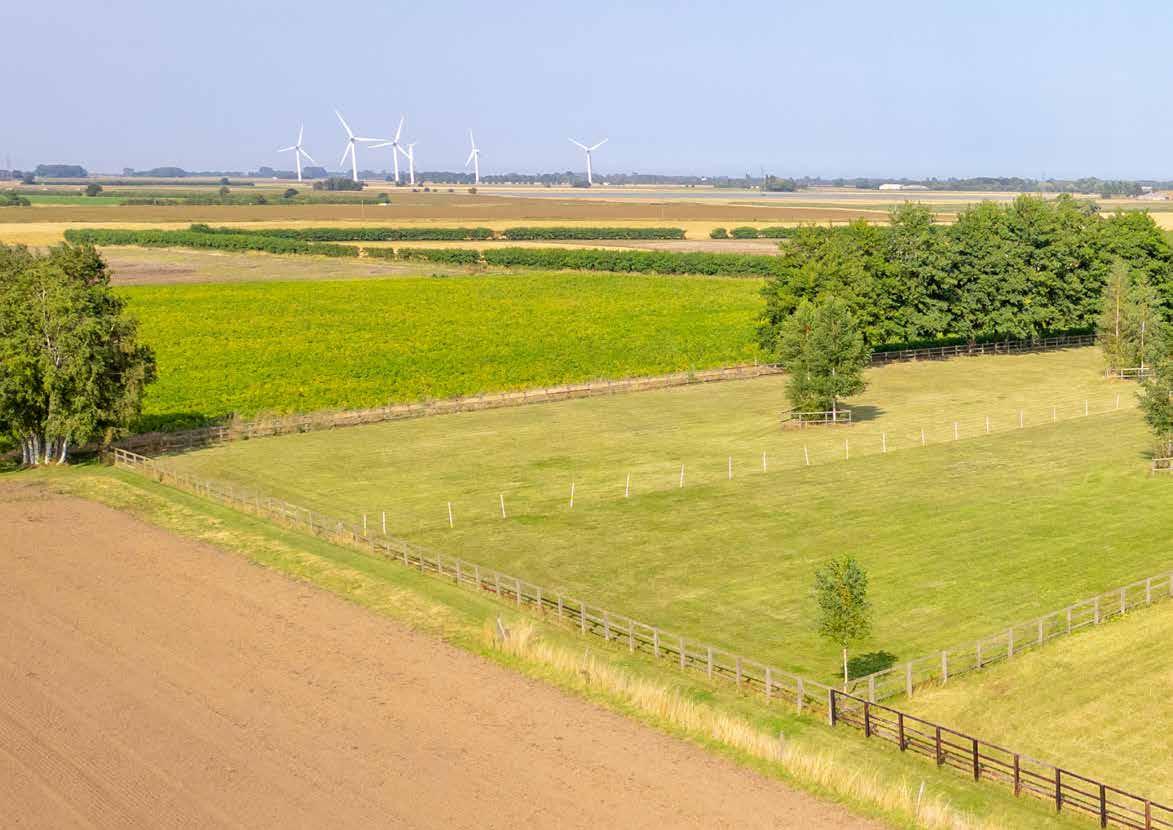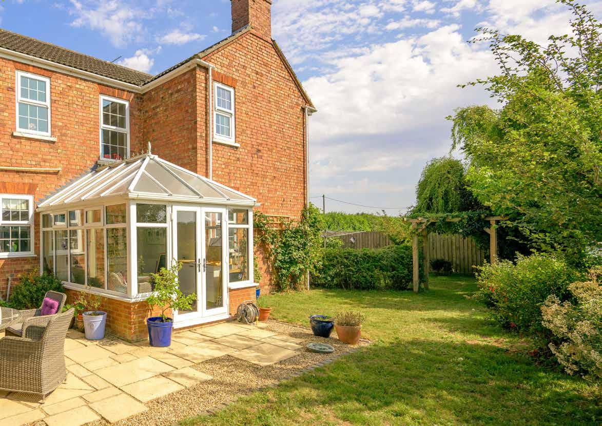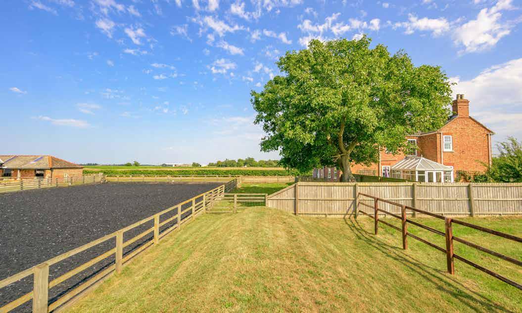 The gardens around the house add another layer of appeal. Wrapped around the property and enclosed for privacy, they form a natural extension to the living space and are only steps away from the equestrian yard. A pergola walkway with climbing plants creates a charming feature, as does the covered porch area, ideal for sitting out and enjoying the changing scenery. The owners often remark on the sense of space and light here, with vast fenland skies overhead that make for memorable sunsets and stargazing on clear nights.