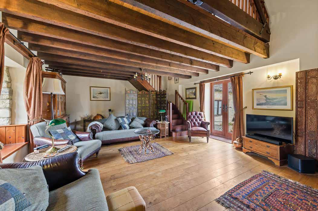 The reception room is without doubt the heart of the house. Once a function room when the property was part of the inn, it has an extraordinary sense of scale, with a vaulted ceiling, exposed timbers and a huge stone inglenook fireplace with log burner. A mezzanine level overlooks the room, creating a flexible area that could be used as a study, library, music room or den. It is a space made for gatherings, whether that means quiet family evenings by the fire or larger celebrations.