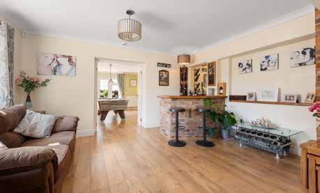 home office), 2 with en suite showers, a family bathroom, a stylish kitchen, and 3 reception rooms, 2 exceptionally large. The layout has created an easy flow between the reception rooms and onto the garden, and spaces are very light and airy. Windows and external doors are all double-glazed uPvc and bathrooms are all modern and fully tiled. One of the principal reception rooms features exposed brick and has an open fire in a brick fireplace at one end and a bar in a corner at the other. Double doors open into a games room with French doors onto the garden and further doors open into the kitchen and into a hall that leads to the annex.