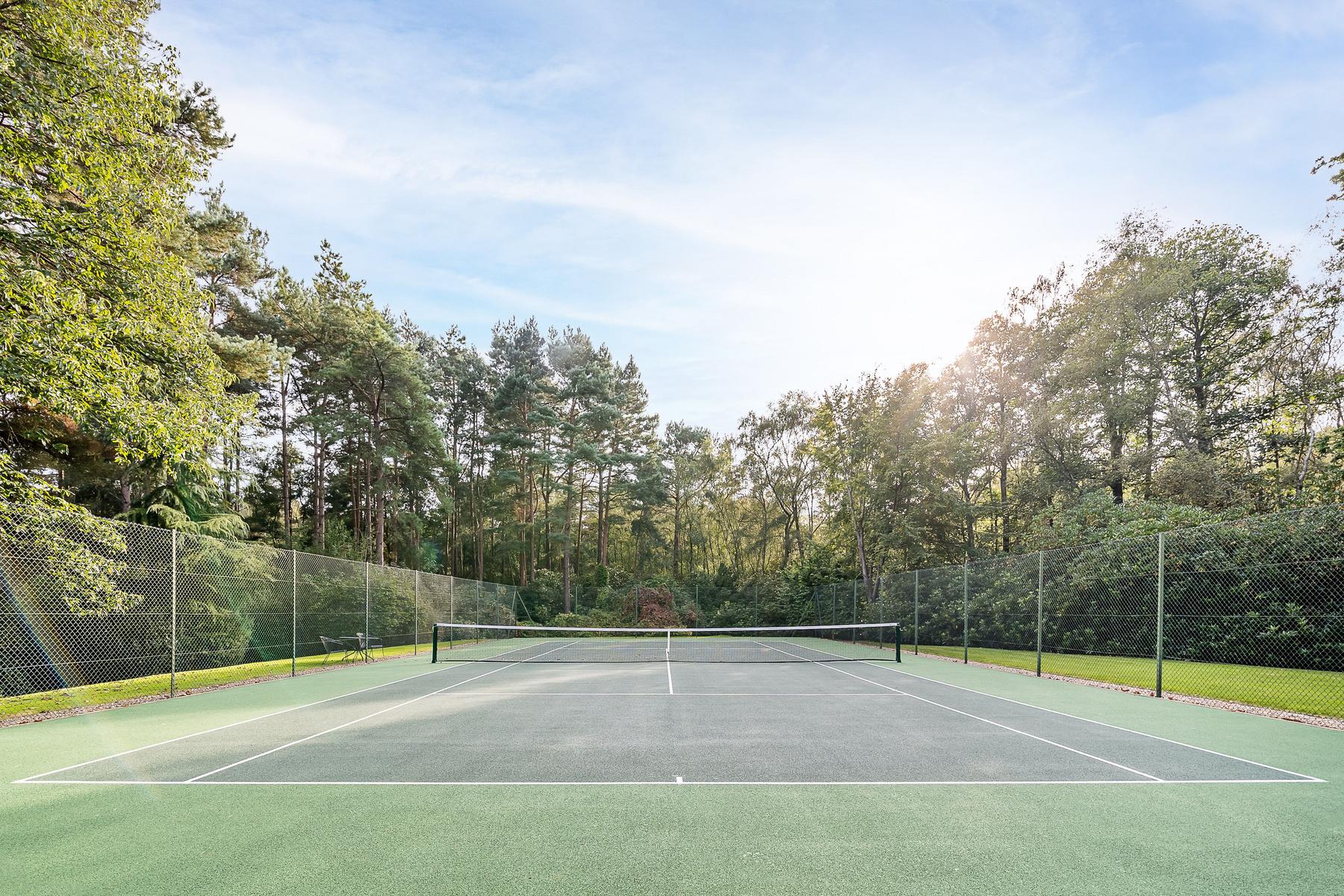 Outside this fine home continues to impress with a triple garage, outdoor heated pool complete with BBQ area and adjacent changing and kitchenette facilities, beautifully landscaped gardens and a newly resurfaced tennis court which offers arguably one of the most impressive back drops we have seen, it’s simply spectacular. The property is accessed by a long private road and entered via electronically operated gates which lead you onto a sweeping driveway which brings you to the triple garage/front of the home.