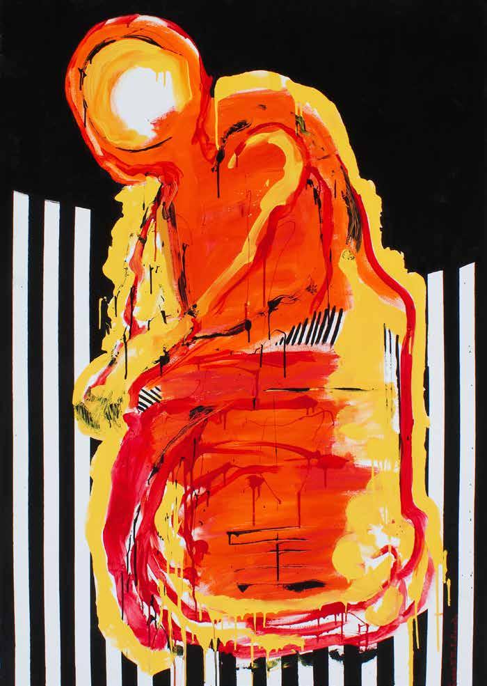 JAMIE: It is the movement in the pieces.Your various collaborations with other artists of note offers a suggestion of the opportunity to personally conceptualize within your abstracted works with a fascination for what is held in the forging fire. The incorporated realistic imagery in some pieces are crisp and sharp and a contrast to the unbridled compositional abstractions formulated in conjunction with the media and method of the artists, providing a fun Pop feel to some of the pieces.