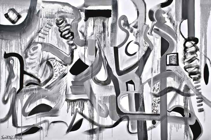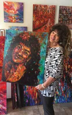 the same thing where people can say, “I’ve seen that before.” I want my art to be in a home and every time you see my piece you see something new, which relates to the fact that there’s a lot going on, from color to texture to symbolism. When you’re in your 20s you don’t really think about the future. Later, it’s about where I’m going instead of where I’ve been. You go through pain, you go through joy and there’s certain things that help you get there and certain things that don’t. When I first started out, 10-20% of the paintings I created worked. Now I would say 90% of what I do works, I wish I could say everything. One of the the fun things about being an artist is you’re switching out the art on your walls all the time.
