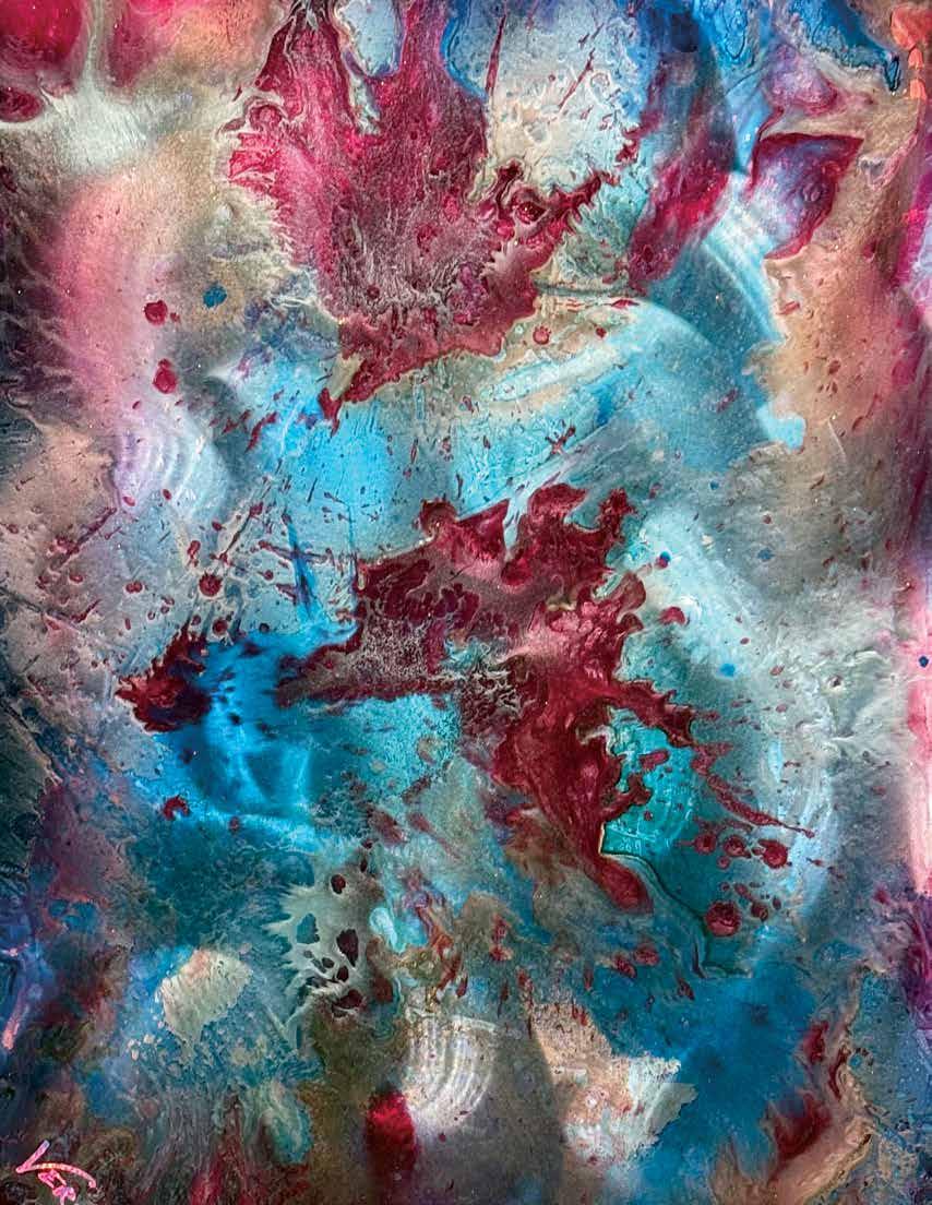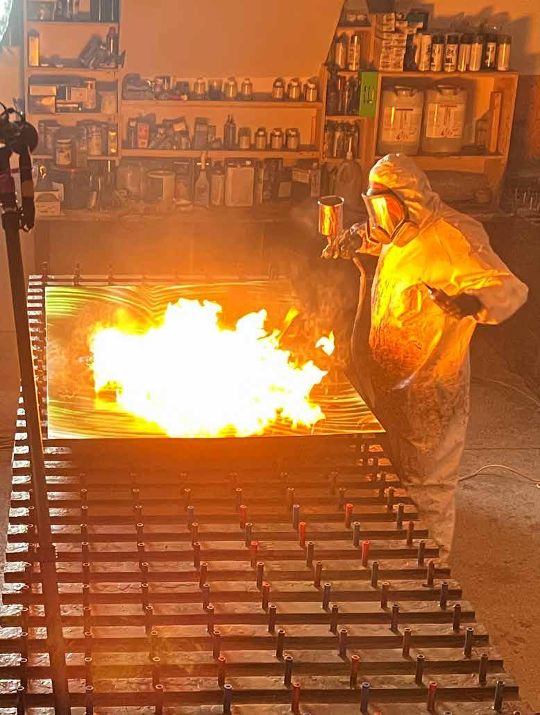 JEFF: I think it evolves. I’m different than most artists. I don’t write anything down and the way I create is I’m going through my feelings and emotions. My process to complete a work takes about four to six weeks. On average, I paint 25 to 35 layers of paint and I set them on fire. I actually started by putting food coloring and gasoline on heating duct material. It quickly evolved to where my products just kept getting more advanced, using highend car paints, Lamborghini, Ferrari and it started taking off. I just keep pushing myself and pushing myself for new ideas, and keep evolving and getting better and better.