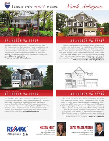 Located in the well-established Berkshire Gardens neighborhood and just a short walk to metro, this new 5 bedroom, 5.5 bath custom Craftsman home has almost 5,800 square feet of interior space on 3 finished levels. A covered stone front porch, 2 car garage with carriagestyle doors, gourmet kitchen complete with large island, butler’s pantry with wine chiller, adjacent family room w/coffered ceiling, main level library with built-ins and master en suite fit for a king are only some of the features that make this home so desirable. Offered at $1,649,900. Virtual Tour www.2614NRockinghamSt.com
