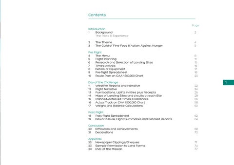 Contents Page Introduction 1 Background 2 The Pilots & Experience 2 The Theme 4 3 The Guild of Fine Food & Action Against Hunger 5 Pre Flight 4 The Menu 5 Flight Planning 6 Research and Selection of Landing Sites 7 Timed Arrivals 8 Details of Equipment 9 Pre-flight Spreadsheet 10 Route Plan on CAA 1:500,000 Chart