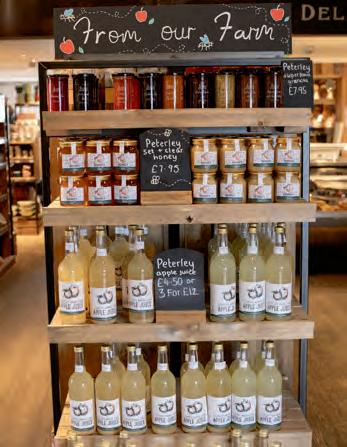 The product mix combines local suppliers with high-end items from further afield. Own-label jams and chutneys sit alongside the farm’s own pressed apple juice, encouraging customers to pick up branded items alongside