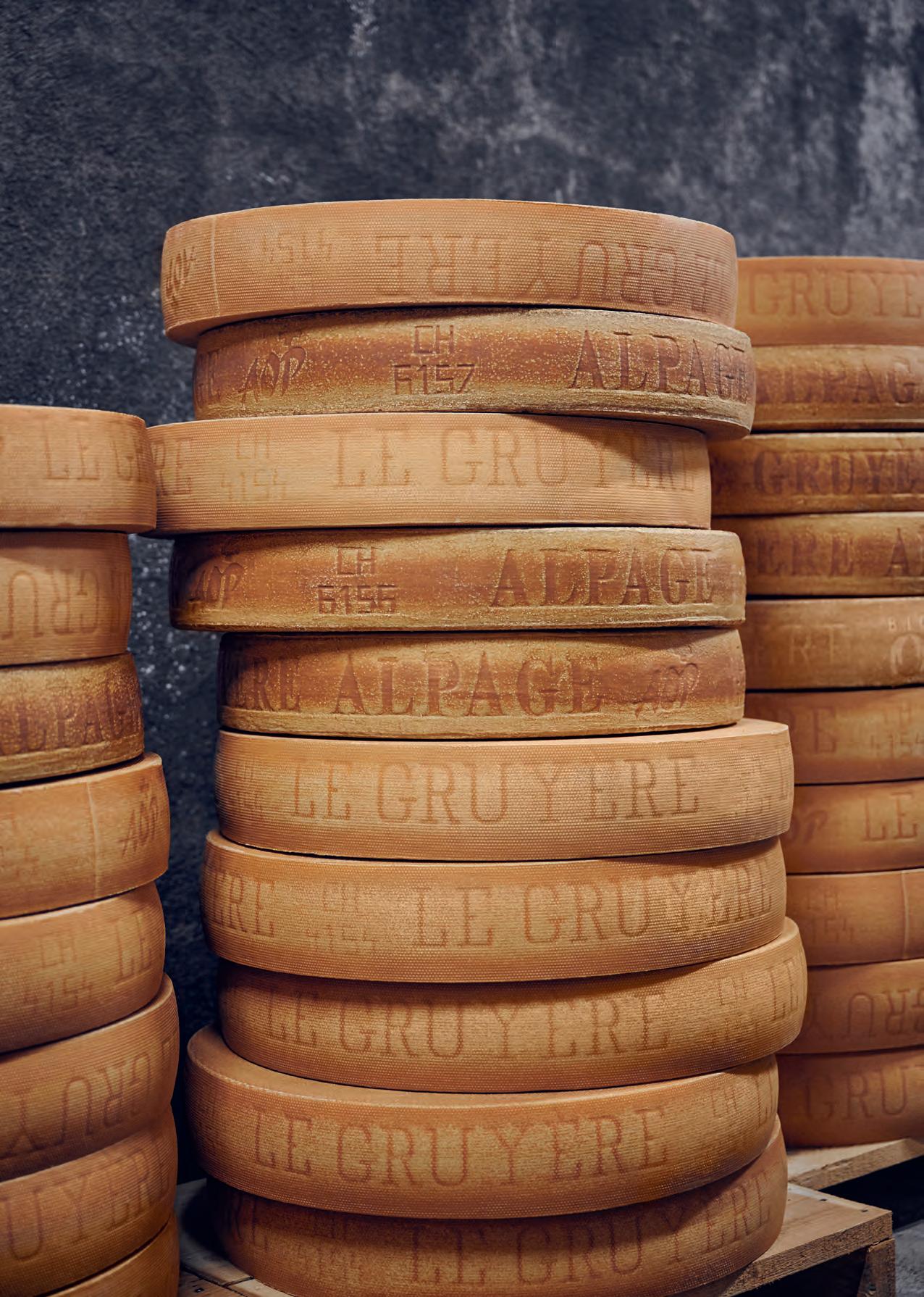the heart of what makes the cheese so special, acting as custodians of the land and guardians of quality and tradition. By law, milk for Le Gruyère AOP can only come from cows fed on grass in the summer and hay in the winter – the vast majority of which is grown in the region. That means strictly no additives or silage (fermented grass).