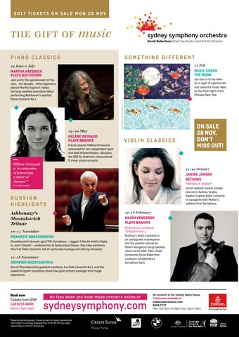 All concerts at the Sydney Opera House Tickets also available at: sydneyoperahouse.com 9250 7777 Mon–Sat 9am–8.30pm Sun 10am–6pm