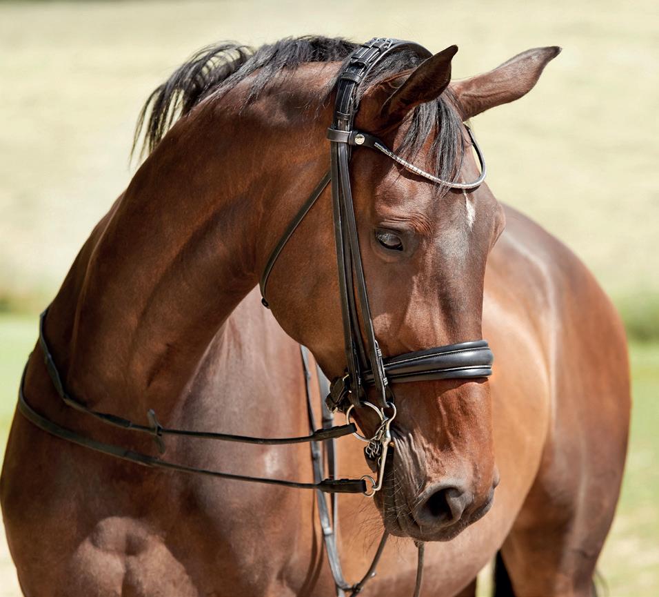 Pad on noseband to protect the mandible Noseband can easily be removed or switched from the side of the neckpiece