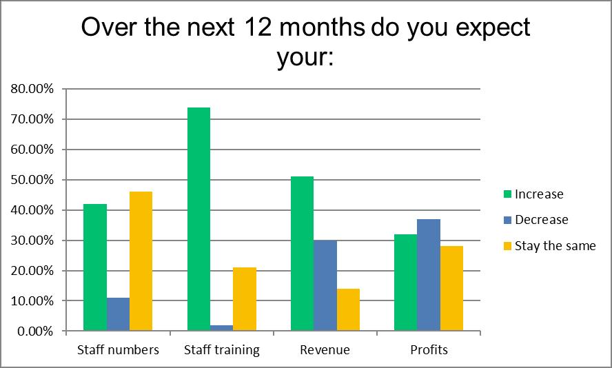 • 40% expect to increase staff numbers.