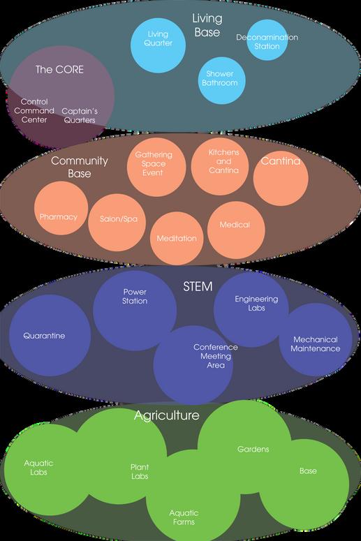 The lowest ring of the Sea of Neoma is where the agriculture and aquaculture labs are located. The labs are linked in a ‘ring’ shape to encourage collaboration. The two departments have a direct effect on one another and having a space without physical barriers allows for more direct communication.