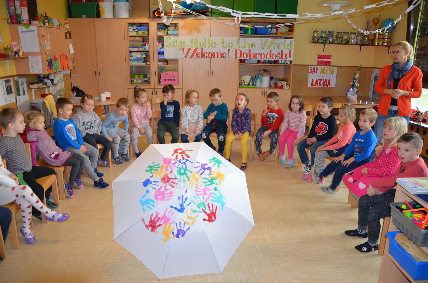 V mednarodni projekt Pomahajmo v svet – »Say Hello To The World« smo vključeni kot Vrtec Urša že peto leto. Spoznavamo prijatelje vsepovsod po svetu – od hrvaškega Lovrana, Litve, Latvije, Zagreba in vse do Bosne in Hercegovine. Predstavili smo sebe, naše najdražje družine, predstavili in ponesli v svet dober glas naše domovine Slovenije, se družili na obisku pri predsedniku republike Borutu Pahorju, obiskali parlament, obeležili 20-letnico Vrtca Urša, zato je letos čas, da predstavimo tudi naš kraj – Domžale z okolico.
