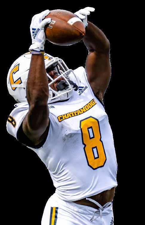 A CHATTANOOGA MOCS FOOTBALL PLAYER SOARS FOR AN IMPRESSIVE CATCH, SHOWCASING ATHLETICISM AND FOCUS.