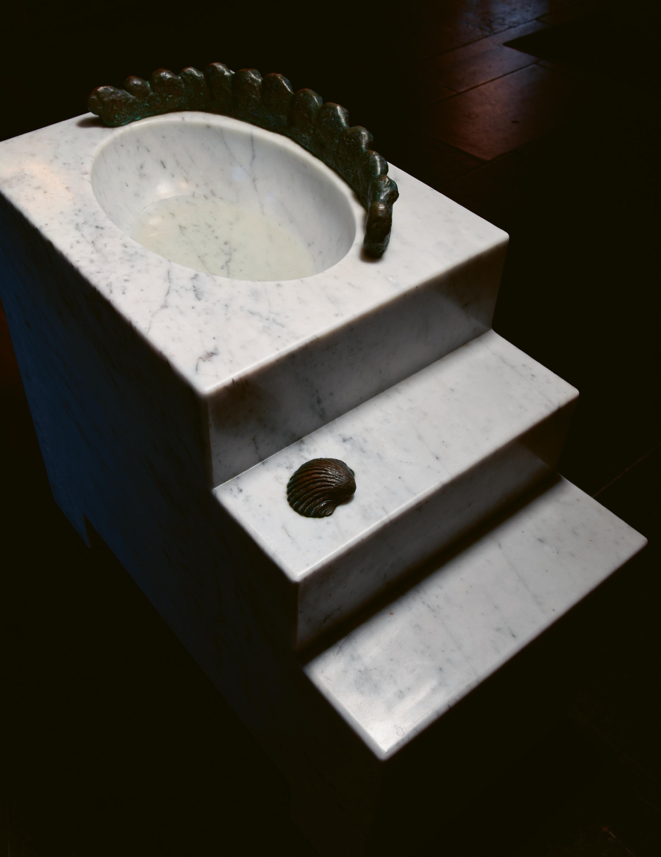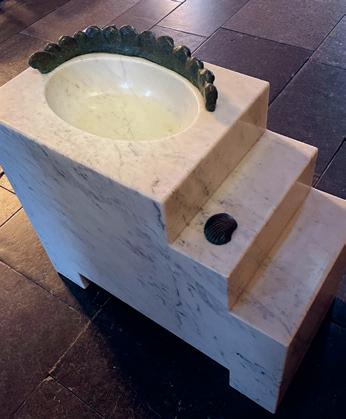 I samband med det ekumeniska mötet 2016 då påve Fransiskus och representanter från Lutherska världsförbundet gästade Lund ville man synliggöra att den lutherska kyrkan och den katolska kyrkan delar dopsyn och erkänner varandras dop. En ny dopfunt togs då fram av konstnären Bianca Maria Barmen. Foto: Jan Kjellström