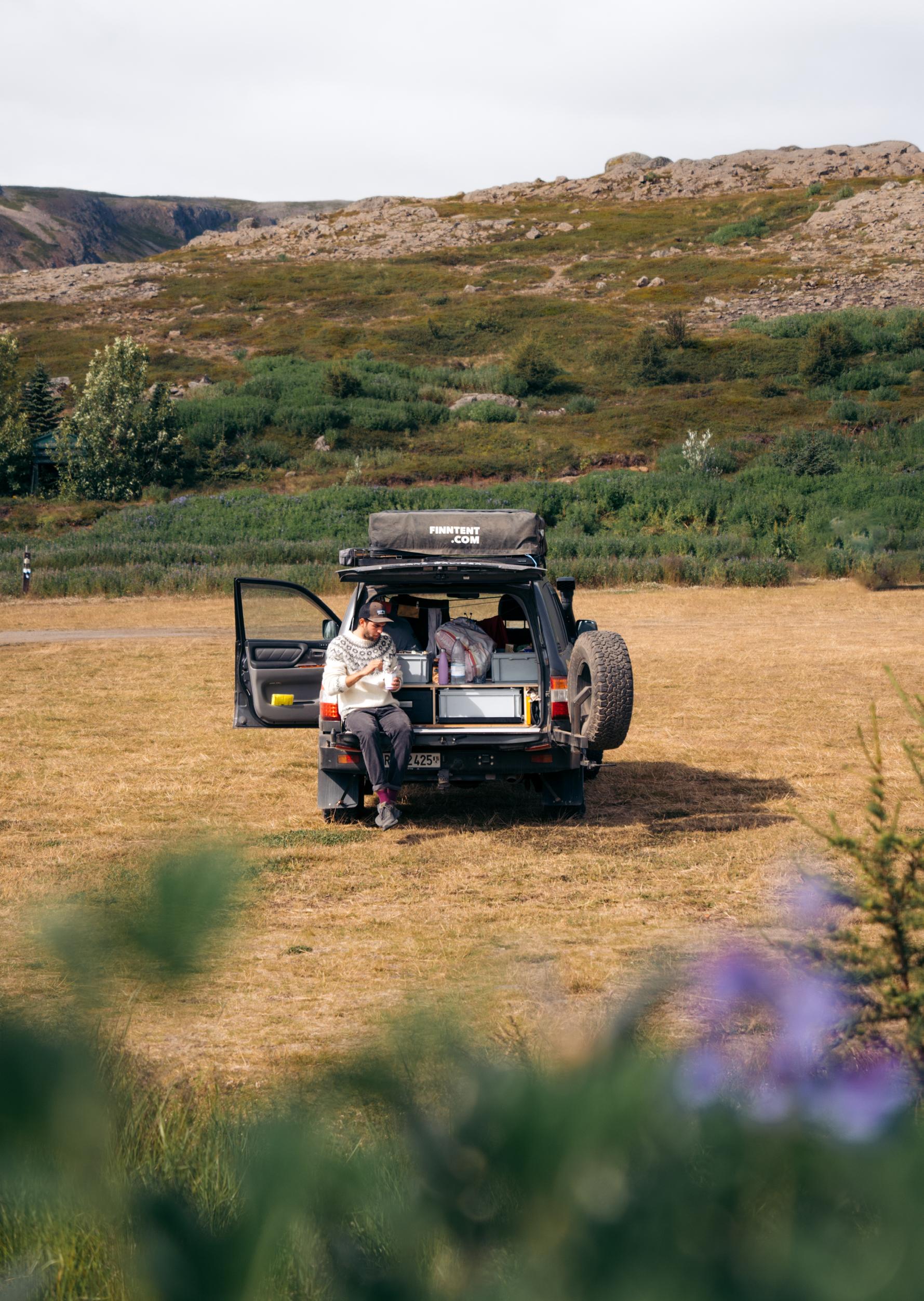 Immergés dans les bruits de la nature, une tasse de thé à la main, nous nous asseyons devant notre voiture et profitons de la vue unique.