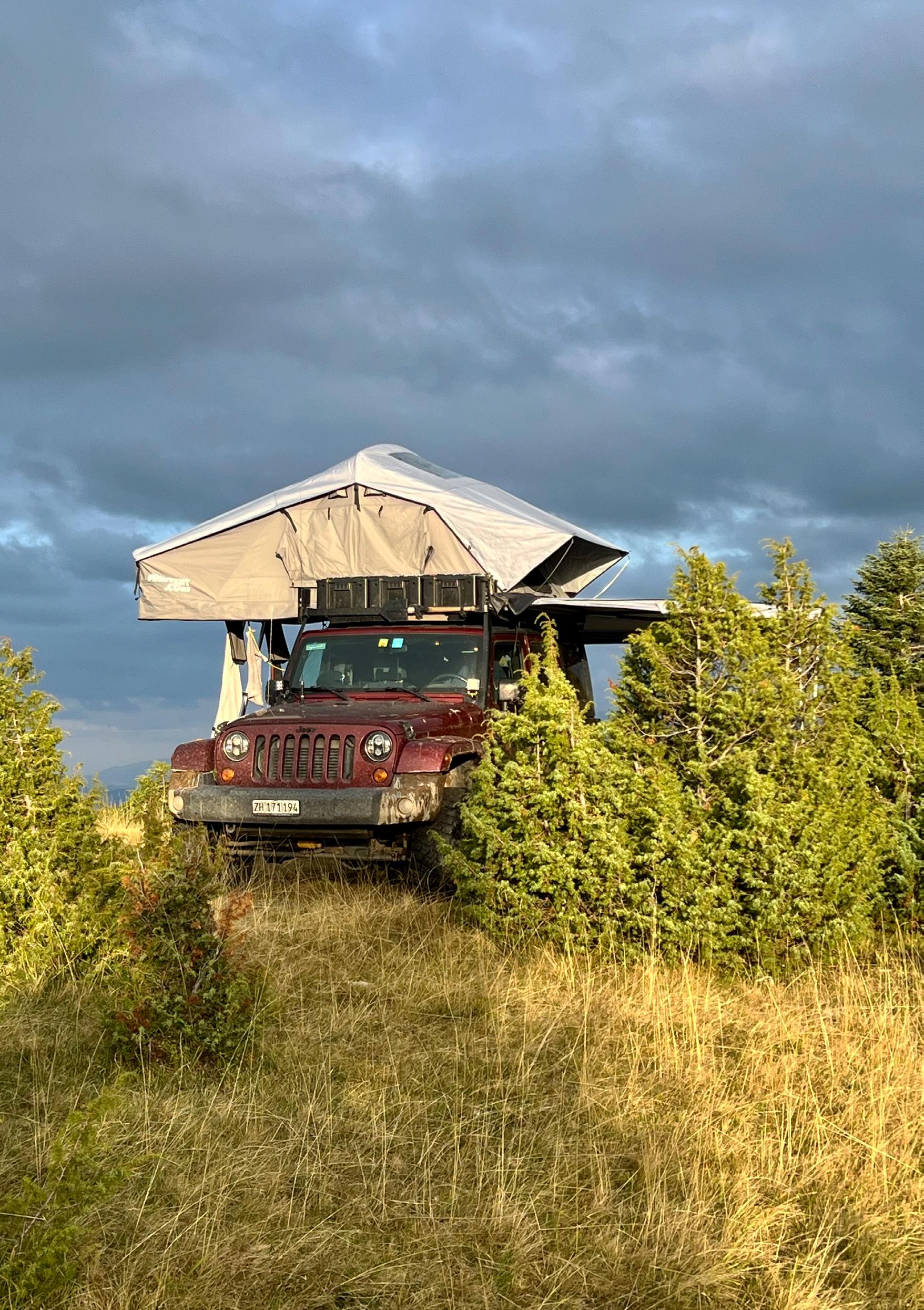 Grâce à sa construction robuste, elle a résisté à toutes les conditions météorologiques. Des orages dans les montagnes aux vents violents de la côte adriatique, nous avons toujours pu dormir en toute tranquillité dans la tente de toit.