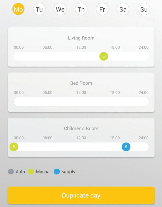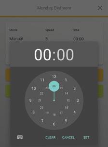 Om de tijd en andere instellingen van de gemotoriseerde ventilator te beheren, drukt u op het kalendericoontje.
