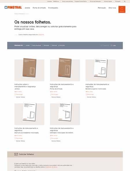Para mais informações sobre o manuseamento e a conservação dos nossos produtos Finstral, respeite as indicações constantes do nosso documento “Instruções de manuseamento e segurança. Janelas.”. Pode encontrá-las em: finstral.com/manuals