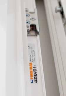 Cada elemento se identifica mediante un número de identificación con los datos del fabricante. Gracias a ese número de identificación es posible relacionar la ventana con su declaración de prestaciones y su marcado CE. Para toda la gama de productos, Finstral imprime los datos de identificación del fabricante y el número de identificación del producto en una etiqueta vista en el interior del marco, en la parte superior al lado de la bisagra. En las ventanas, la etiqueta permanecerá siempre vista incluso después de que el elemento ha sido instalado. En los elementos fijos, la etiqueta se aplica bajo el junquillo.