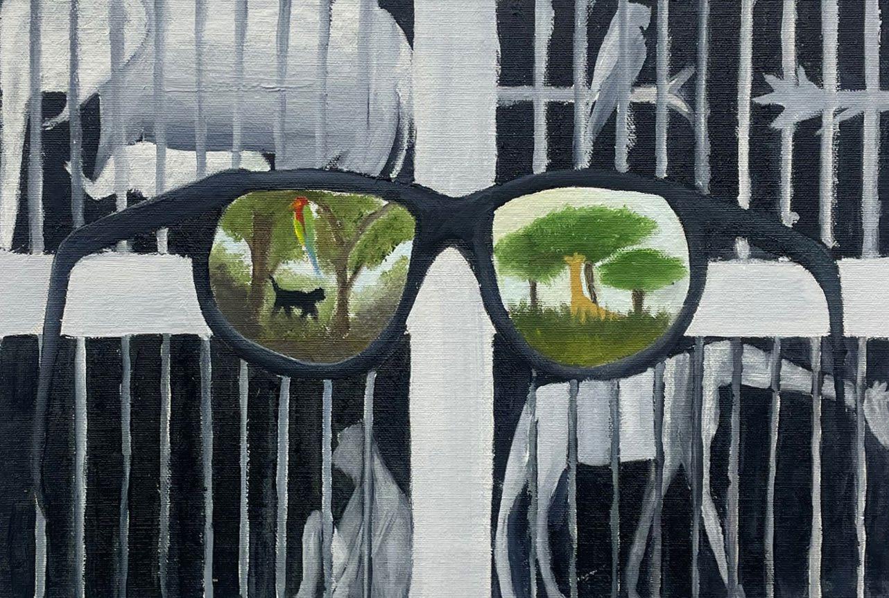 She thrashes at the easel. Her brush scrapes at the board as she throws herself, her angst, her overwhelming passion, at its delicate frame. Scrape. In a violent motion, she drags her fingernail across the fresh paint, tainting her faintly pink fingertips a bright red. A tear drips from its socket, and a tear in the board emerges. She takes a deep breath. Her pinky finger gently strokes the ruptured easel, an alien motion to her violent self. Now, raising herself up, she shifts to a clean easel, and dips the paintbrush in fuchsia. With a delicate flick of the wrist, she produces a pink stroke, and a strangled noise escapes her throat. She tries it again. She exhales. Liberated. 23 years have passed quickly, with every day feeling like a minute- but in painting, every second feels like an hour. She allows herself to relish the slow passage of time.