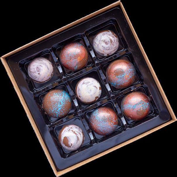 Med fargar, smak og eit kreativt auge skapar Tuba små kunstverk av sjokolade.