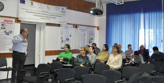 cum pot fi realizate investigaţii la rezoluţie subatomică privind câmpurile electrice cu ajutorul Microscopiei Electronice in Transmisie cu Baleiaj (STEM). Domeniul materialelor ce prezintă procese de conversie energetică a fost ilustrat de lecţiile prof. Daniel Vizman de la Universitatea de Vest din Timişoara care a prezentat rezultate privind creşterea şi caracterizarea cristalelor de fluoruri dopate cu ioni de Er3+ pentru care s-a observat o luminiscenţă UV asociată cu centrele izolate Er3+ la concentraţii scăzute de dopant, ce deschid noi posibile aplicaţii. Prof. Hendrik Swart din Africa de Sud a discutat despre dezvoltarea unor nanofosfori cu proprietăţi de conversie superioară cu durabilitate ş o reutilizabilitate remarcabile pe parcursul mai multor cicluri termice, cu sensibilităţi impresionante şi rezoluţia temperaturii notabilă care indică potenţialul lor pentru aplicaţii în nanotermometria luminescentă. Sfera aplicaţiilor procesării cu laseri ş plasmă în domeniul biomaterialelor a fost acoperită de lecţiile prof. Achim Walter Hassel – Austria care a propus combinarea procesării laser cu pulsuri de femtosecunde cu anodizarea electrochimică pentru îmbunătăţirea bioimplanturilor din titan, în timp ce dr. Andrea Zille - Portugalia a