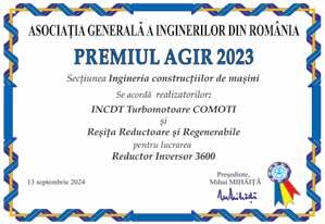 INCD Turbomotoare - COMOTI și REȘIȚA REDUCTOARE și REGENERABILE SA: un parteneriat de succes răsplătit cu premiul AGIR