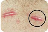 Cicatrice hipertrofică liniară după excizia chirurgicală a unui