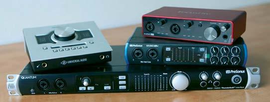 de mixer audio. Da, o astfel de interfață poate avea câteva intrări balansate pentru microfon și câteva intrări de linie (pentru alte surse de sunet și/sau alte instrumente), adică foarte similar mixerelor analogice profesionale, singura diferență fiind faptul că potențiometrele de reglaj nu sunt pe dispozitivul fizic, ci virtual, în aplicația software aferentă. (Ca și placa de sunet, interfața audio USB necesită un software de tip 'driver' care face adaptările între particularitățile de comunicare ale hardware-ului și aplicația software de procesarea a sunetului.) De altfel, când aflăm despre mulțimea de intrări a interfețelor mai scumpe, și știind că fiecare canal/ instrument poate aduce un flux substanțial de date, chiar ne apare întrebarea „poate ea, conexiunea USB – care este serială –, să transmită simultan atâtea semnale audio?". Să vedem! Rata de eșantionare profesională a sunetului este astăzi accceptată ca fiind 192 KHz, ceea ce înseamnă 192000 de eșantioane a câte 32 de biți pe secundă, adică 192000x32=6144000. Deci ~6 megabiți/ secundă pentru fiecare canal/instrument capat. Asta înseamnă că, teoretic, USB 2.0 ar putea capta ~78 de canale/instrumente. Sau că avem potențial să folosim eșantionare la 384 KHz sau chiar la 768 kHz. Oricum, temerea noastră nu e justificată, mai ales că, iată, ultima generație de USB ajunge la 20 gigabiți/ secundă. Eventuala limită/problemă rămâne prețul soluțiilor de performanță înaltă.
