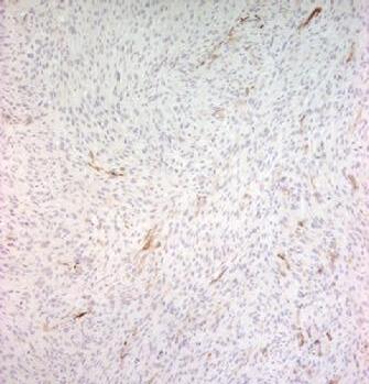 Aceste leziuni tumorale sunt, în general, negative pentru markerii epiteliali, precum pancitokeratina AE1/AE3, și pozitive pentru vimentină – marker caracteristic celulelor de origine mezenchimală. Având în vedere această suprapunere imunofenotipică, a fost necesară extinderea panelului de anticorpi în cadrul investigației imunohistochimice, pentru stabilirea unui diagnostic de certitudine.