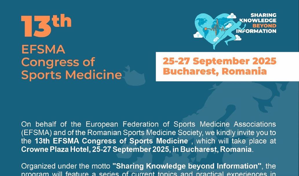 Suntem bucuroși să anunțăm că invitațiile noastre pentru apropiatul Congres au fost acceptate de peste 400 de medici, o participare înregistrată de toate evenimentele echivalente din Europa, la care am contribuit și noi de ani buni. SRoMS nu este o organizație cu mulți membri, puțin peste 100, iar marea lor majoritate și-au anuntat prezența la lucrări. Acestora li se vor alătura, ca de obicei, colegi din specialități conexe, români și străini (din Italia, Spania, Austria, Ungaria, Estonia, Malta, etc.), cu care colaborăm în activitatea noastră de zi cu zi. În ce privește participarea internațională, am fost sprijiniți consistent de Federația Europeană de Medicină Sportivă (EFSMA), ai cărei membri suntem, printr-o promovare susținută care a atras speakeri de top din toate specialitățile interesate. Trebuie spus că, la ora actuală, doar 11 state din cele 27 membre UE recunosc Medicina Sportivă ca specialitate de sine stătătoare, printre care și țara noastră. Suntem parte activă a unei mișcări importante, care urmărește o extindere a acestei recunoașteri în țările europene unde Medicina Sportivă este doar o supraspecializare și chiar crearea unui curriculum comun, care să ușureze pregătirea noilor medici și schimburile de experiență. Această ac-