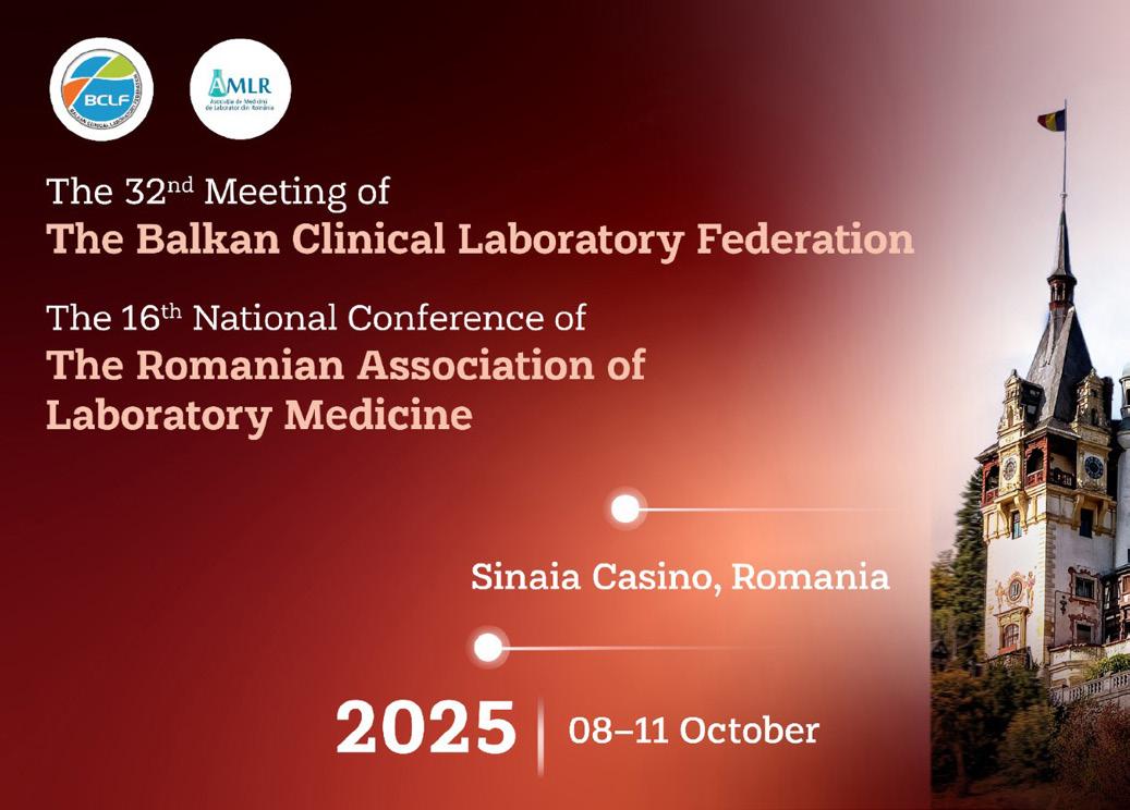 Împletirea celor două evenimente în perioada 8-11 octombrie 2025 la Sinaia reprezintă o premieră istorică pentru Medicina de Laborator din România. Este o onoare și un privilegiu de a găzdui cea de-a 32-a Întâlnire a Federației de Laboratoare Clinice Balcanice, alături de cea de-a 16-a Conferință Națională a Asociației de Medicină de Laborator din România, deoarece acest eveniment reflectă maturitatea și recunoașterea internațională pe care comunitatea noastră medicală a dobândit-o. Conferința noastră națională capătă astfel o dimensiune internațională amplificată, devine forum de dialog între specialiștii români și cei balcanici și oferă o vizibilitate științifică crescută prin publicații și prezentări cu impact regional. Prin această integrare, România demonstrează că nu este doar participant, ci lider în rețeaua laboratoarelor medicale balcanice.
