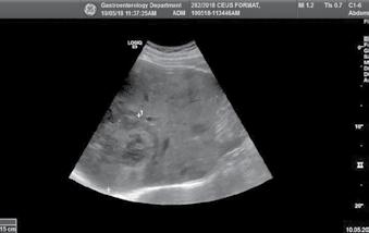 Imagistic se pune în evidenţă stomac îngroșat mai ales la nivelul regiunii antro-pilorice, cu aspect edemaţiat; hepato-splenomegalie (splină cu ax bipolar de 18 cm).