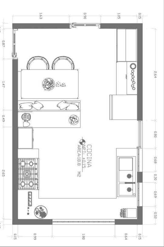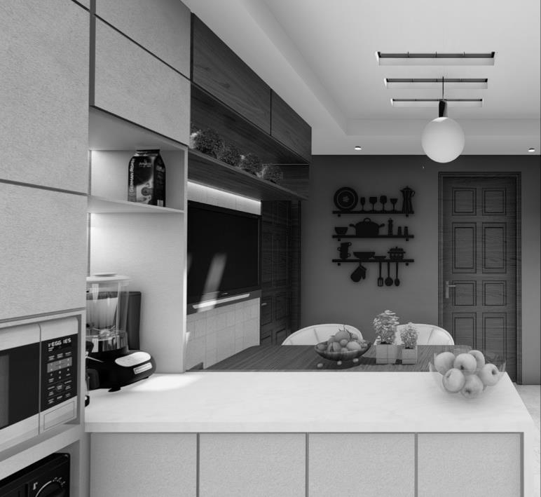 Diseño para remodelación de la cocina de una vivienda en Sachaca El diseño se planteo desde todos los ámbitos, cambiando materiales de pisos y paredes, modificando todo el mobiliario y cambiando y agregando instalaciones eléctricas y sanitarias