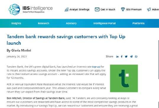 This new launch lays an early marker for 2023, as Tandem looks to support banking for a greener future with customers’ savings supporting green lending and initiatives.