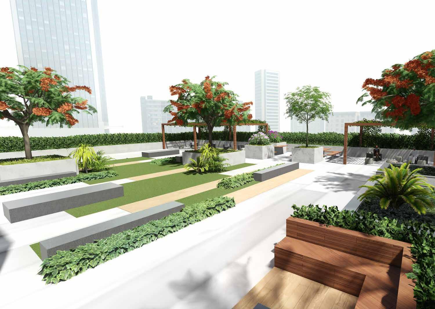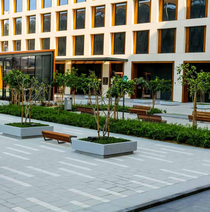 • Urban landscapes that range in size from corporate headquarters to plazas and private gardens