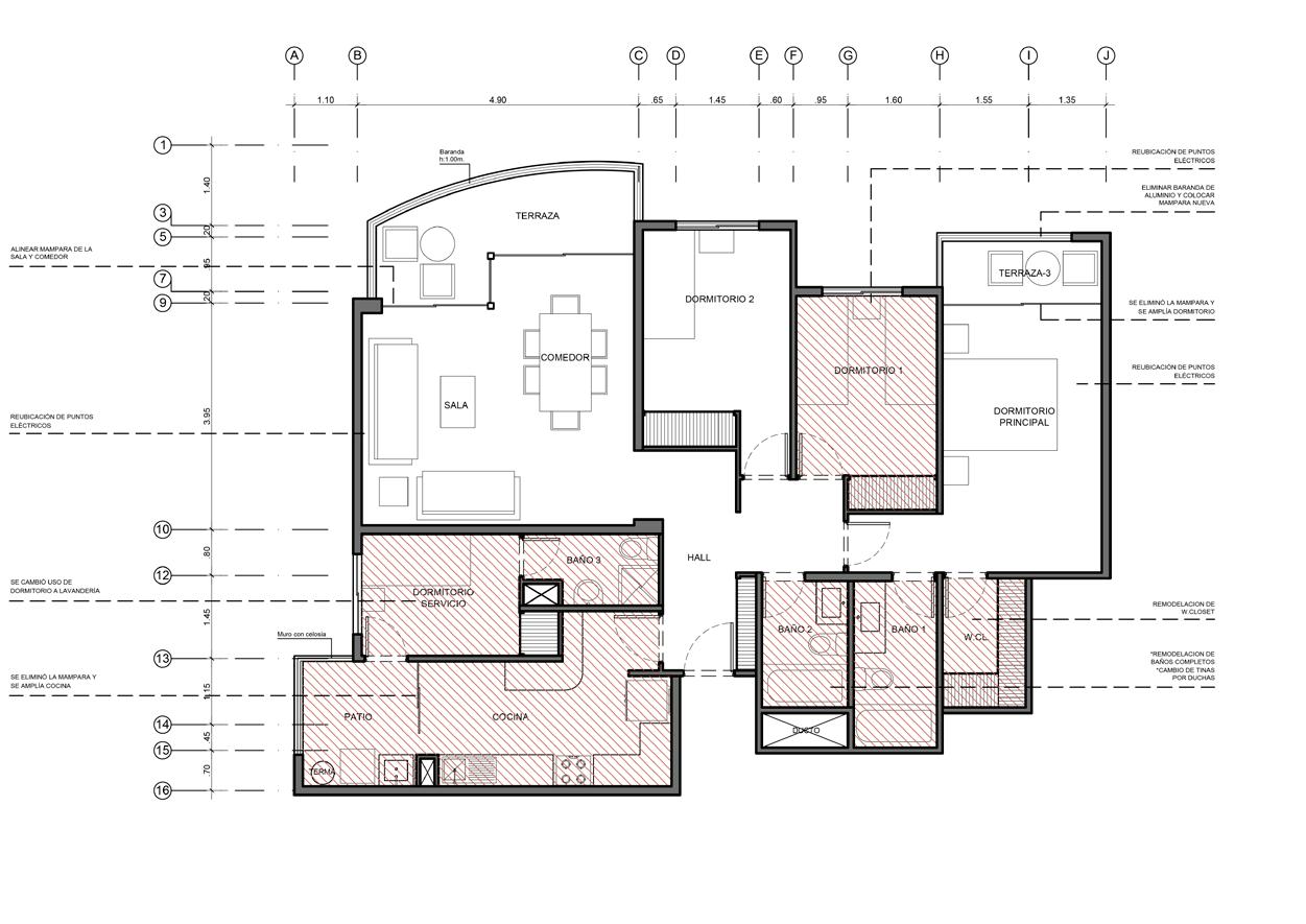 One of the required deliverables after receiving the building permit approval was the development of construction details for the common areas, such as facade construction details, hallway, and staircase detail plans. It was a thorough process due the complex details and diverse materials involved in the project. For the private areas’ detail plans, the task was to supervise the correct development to ensure that the deadlines established by the construction company were met.