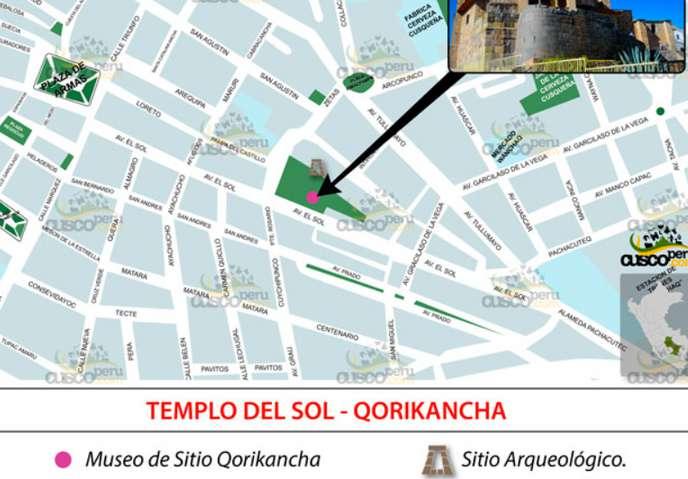 El Templo Coricancha fue construido en 1438 en el sitio del asentamiento más antiguo de Cuzco. En el cruce de la avenida del sol y la calle santo domingo. A menos de 5 minutos de la plaza de armas de Cusco.