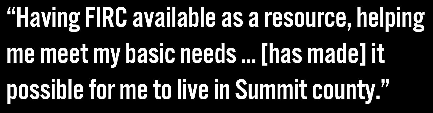 I would like to express my gratitude to each staff member, volunteer, Board Member, supporter, and community partner who helped FIRC this past year Your hard work, dedication, and passion are the driving forces behind our success Thank you for your continued support and trust. Together, we will continue to make a meaningful difference in Summit County.