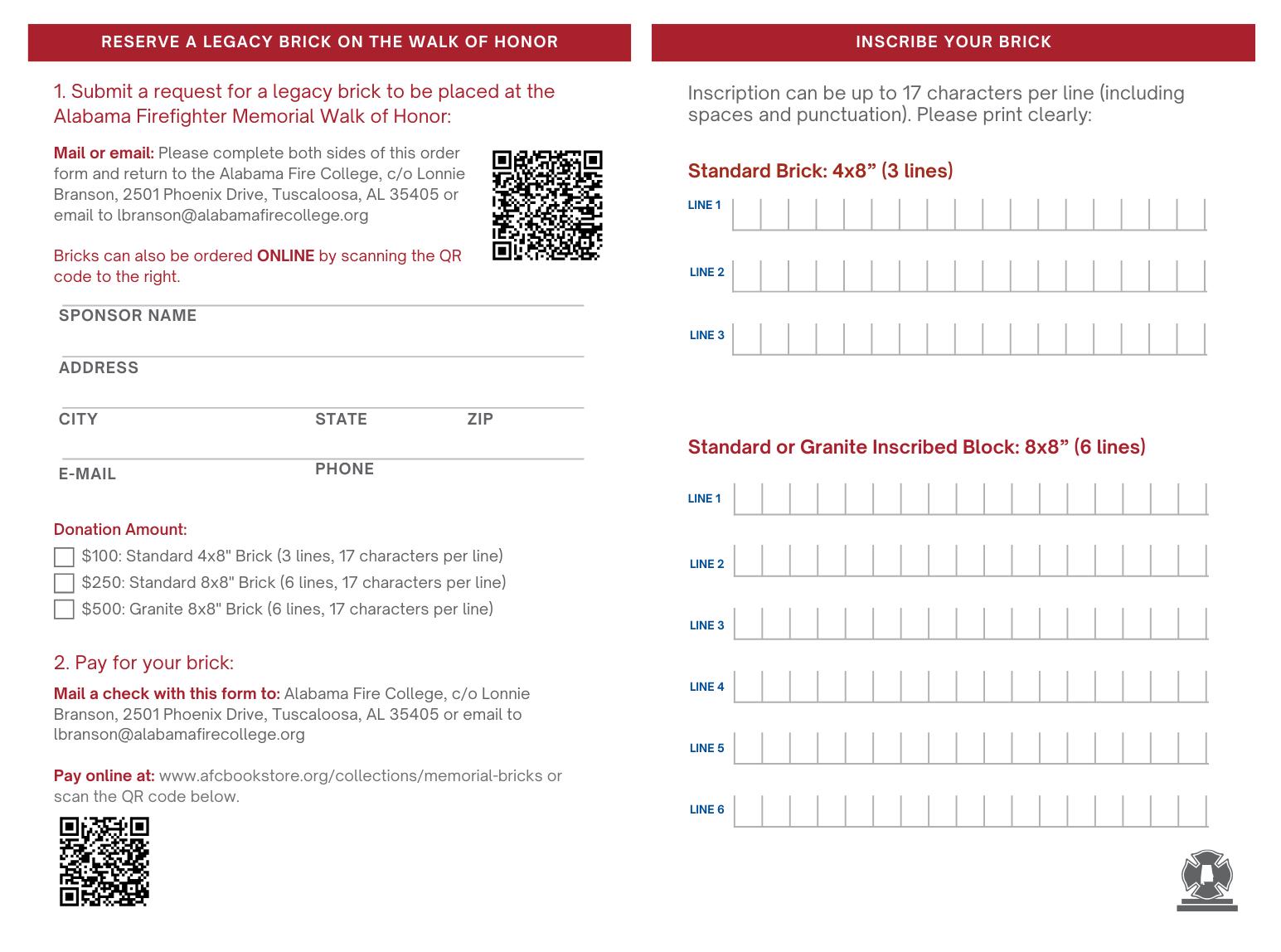 Alabama Firefighter Memorial Brick Inscriptions by Alabama Fire College - Issuu