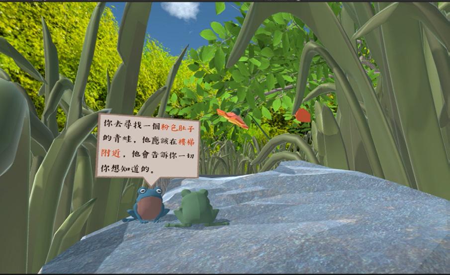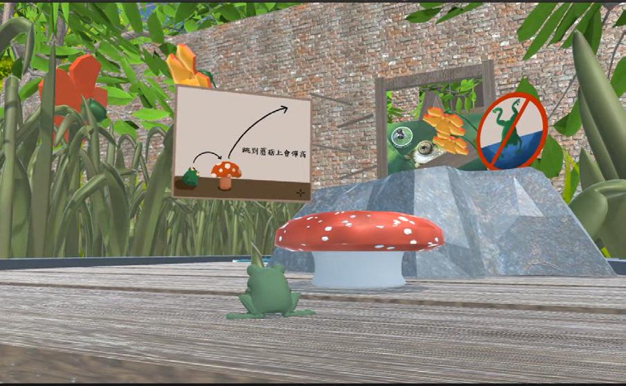 玩家操作小樹蛙移動,通過觸碰npc來獲得小提示以及前面一些提示板來告訴玩家 怎樣操作和練習。當玩家把前面新手教學的部份過完,到樹屋便屬於魔王級難度的關 卡內容,主要圍繞怎樣擺盪和利用小蘑菇跳完成關卡。