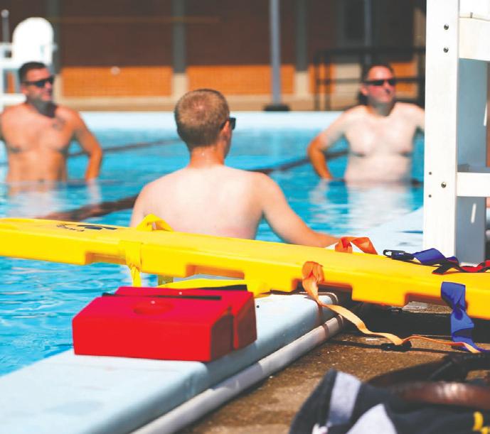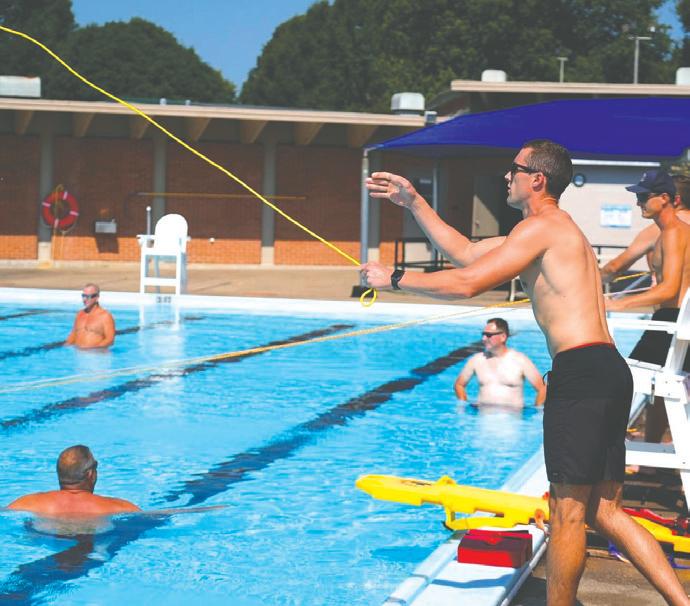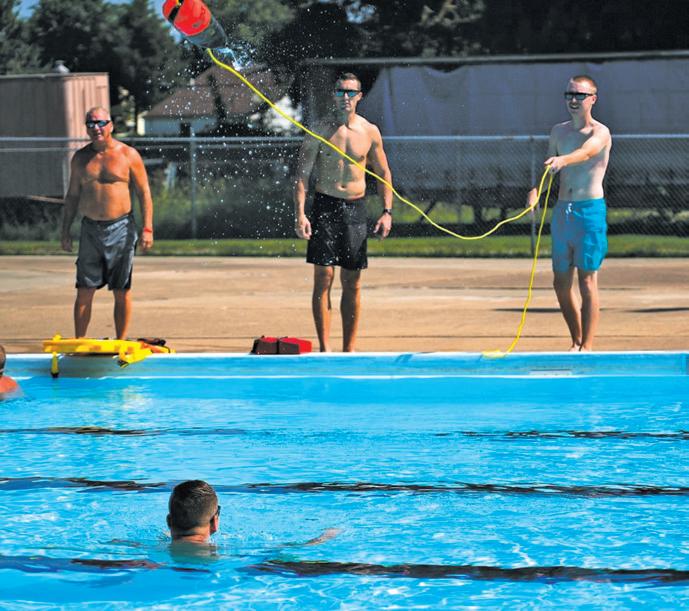 Owensboro crews trained recently on waterrescue response at Combest Pool. The responders used this controlled environment to refresh on life-saving techniques that can be used not only in swim-