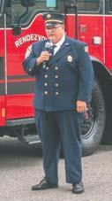 The East Northport Fire Department held their21st annual September11th Memorial Service at their9/11 Memorial Monument, set around an eight-foot, 8,000pound steel beam from the World Trade Center. Chief Steven Macedonio welcomed the guests, followed by a prayerfrom Chaplain William Bootz. The sirens were sounded to mark the time of the South Towercollapse, which was followed by the reading of all victims’ names. The sirens were again sounded to mark the collapse of the North Tower. An engine presented with a memorial bannerlisting all the 9/11 victims on it. The Marine Corps League fired a salute, followed by “Taps” played by Centerport FirefighterStan Wertheimer. Memorial doves were released and the service concluded with a helicopterflyoverby Suffolk Police. - Fire News photos by Steve Silverman