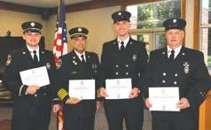 At the June 2022 department meeting of the Massapequa Fire Department, fourmembers of the department were presented with Department Citations fortheirparticipation in the rescue of a woman who was trapped undera LIRR train at the Massapequa Park Station on September29, 2020. Presenting the awards were the chiefs of the department. The recipients in the front row (left to right) were: exCaptain Michael Schunk, FirefighterJesse Maneri, exCaptain Robert Kennedy and ex-Captain James Montario.