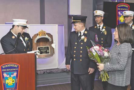 The Woodmere Fire Department held its 133rd annual installation dinneron the evening of February 4, 2024. Michael Sauerand Yehuda Berman shared the role of masterof ceremonies forthe event which began with the presentation of colors by the Woodmere Fire Department ColorGuard, the pledge of allegiance led by Sergeant-at-Arms Edwin Oberstein, and the invocation led by Chaplain Yehuda Berman. The chiefs, line officers, and otherpositions within the department including Third Battalion Delegate were installed into office. The awards given out included EMS Providerof the Year, the Officers Award, and the Firefighterof the Year. Ex-Chief Michael Weiss was honored forrecently completing his term in the Chiefs Office. Leading the Woodmere Fire Department in the yearahead will be Chief of Department Ross Rieman, First Assistant Chief Joseph Greenstein, and Second Assistant Chief Evan Perlzw eig. Congratulations to those awarded and good luck to those installed.